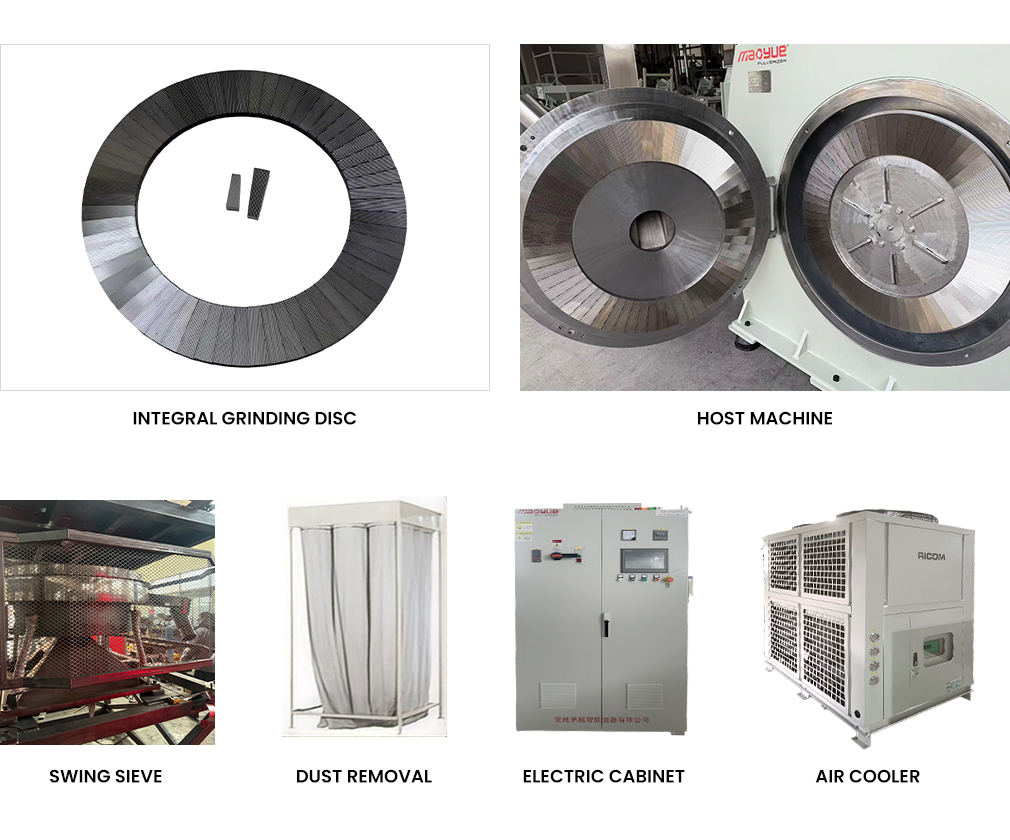 يستخدم قرص الطحن التبريد بالكربنة + طلاء مقاوم للتآكل السطحي، مما يؤدي إلى إطالة عمر الخدمة إلى 800-1200 ساعة عند معالجة المواد ذات نقطة الانصهار العالية/الصلابة العالية مثل PA66/PA12، مع تمديد فترات الصيانة بنسبة 30%. يضمن جمع الغبار النبضي الاختياري وفاصل المعادن نقاءً أعلى للمسحوق (الشوائب <50 جزء في المليون) وتحكمًا أكثر دقة في الدقة (شبكة مرنة 10-120). تتمتع الماكينة بأبعاد معتدلة، واستهلاك محسن للطاقة (إجمالي الطاقة 70-85 كيلو وات)، وتوفر نسبة تكلفة إلى أداء في السلسلة. إنه النموذج الرئيسي لمؤسسات إعادة تدوير/تعديل البلاستيك المتوسطة والكبيرة —أقوى من 500 وأكثر اقتصادا من 800، ويحقق توازنا مثاليا بين القدرة والاستقرار وعائد الاستثمار.